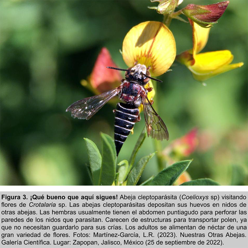 - En el mundo existen alrededor de 20,000 especies de abejas, la gran mayoría son solitarias, lo que significa que cada hembra por sí misma se encarga de construir su nido, colocar sus huevos y proveer alimento para ella y sus crías. Pero algunas especies de abejas son parasitas: entran de forma sigilosa en un nido ajeno y sustituyen con sus propias crías las de otras abejas.
