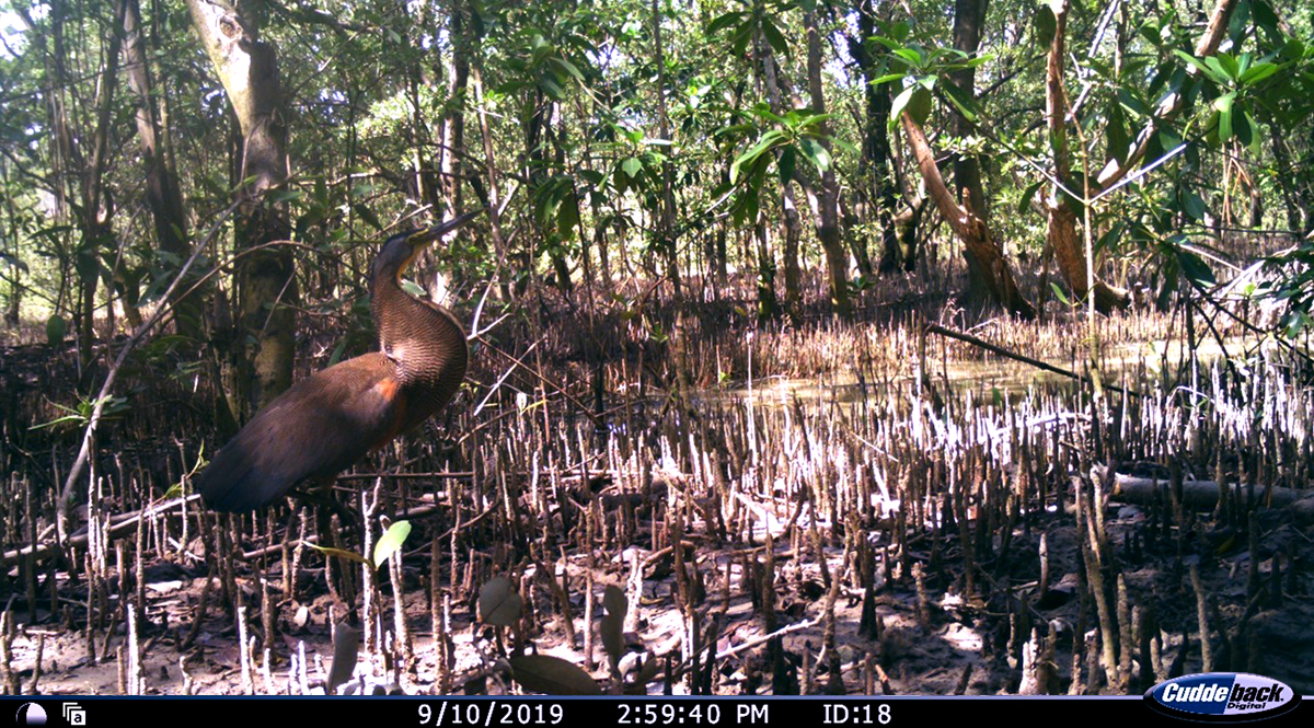 Fuente: Registro fotográfico en cámara-trampa de garza tigre mexicana (Tigrisoma mexicanum) en zona de manglar en UMA de vida libre del Estado de Tabasco. Foto: Alejandro Ortega Argueta.