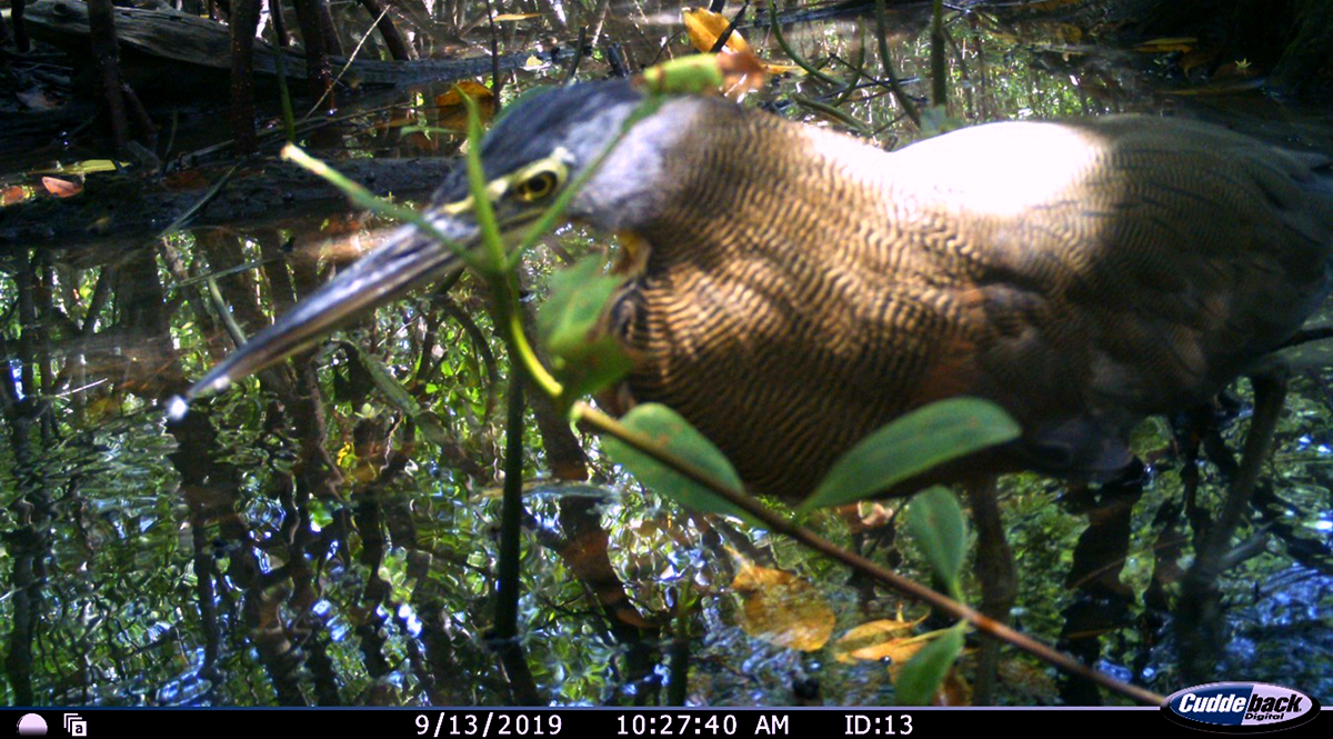 Fig 2. Registro fotográfico en cámara trampa de garza tigre mexicana (Tigrisoma mexicanum), en zona de mangle de una UMA de vida libre en el Estado de Tabasco. Foto: Alejandro Ortega