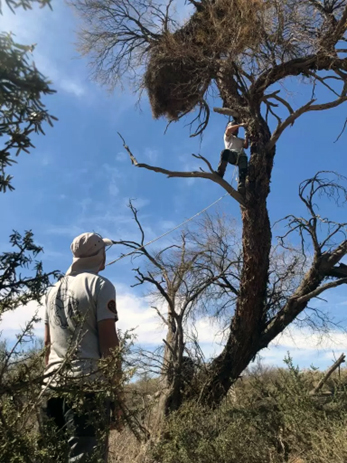 Figura 1. Colocación de cámaras-trampa en nidos de águila coronada (Buteogallus coronatus)en Argentina. Fuente: Roberto Louet, 2024 en Diario Mendoza Digital Online, https://www.diariomendoza.com.ar/mendoza/instalan-camaras-nidos-aguilas-coronadas-mendoza-n68039