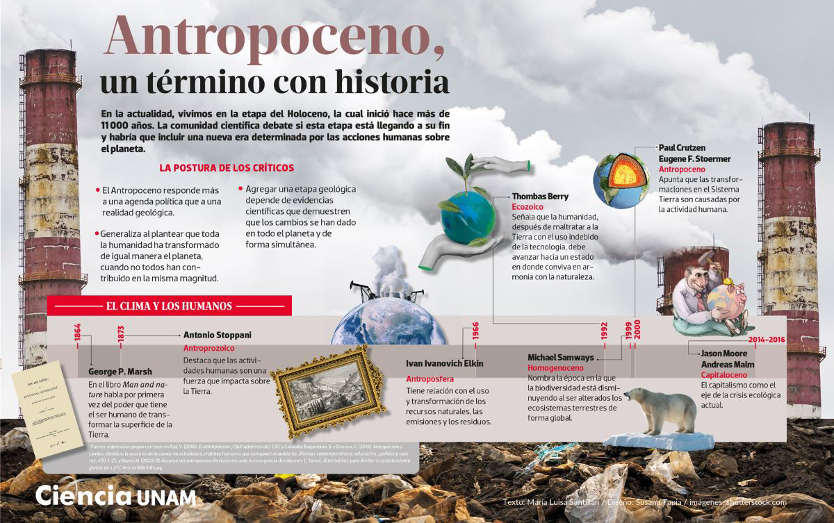 Santillán ML, Tapia S. 2024. El Antropoceno a debate. Ciencia UNAM. https://ciencia.unam.mx/contenido/infografia/265/el-antropoceno-a-debate