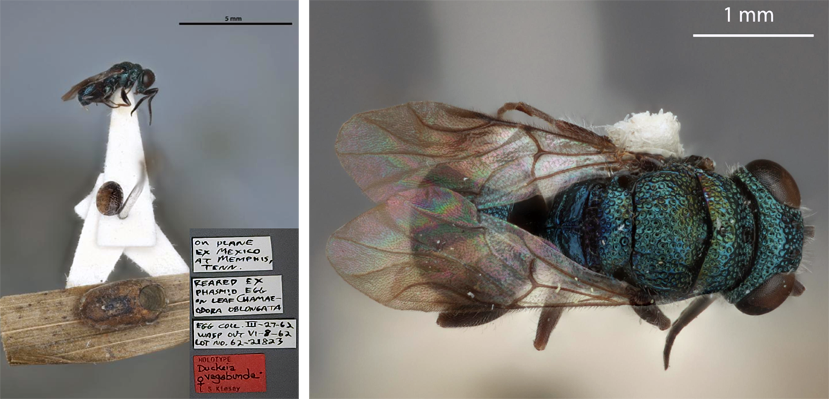 Duckeia vagabunda fue descrita en 1987 por la entomóloga Lynn Kimsey, de la Universidad de California en Davis, y su nombre científico hace honor a este peculiar viaje que hicieron estas dos avispas para llegar hasta las manos de su descubridora.