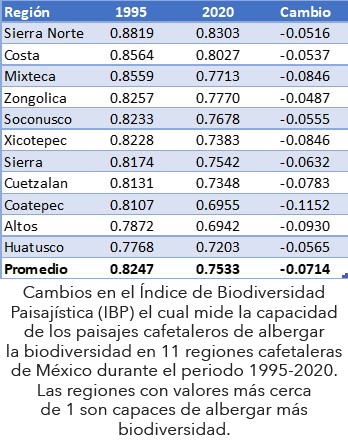 Cambios en la capacidad de los paisajes cafetaleros para conservar la biodiversidad