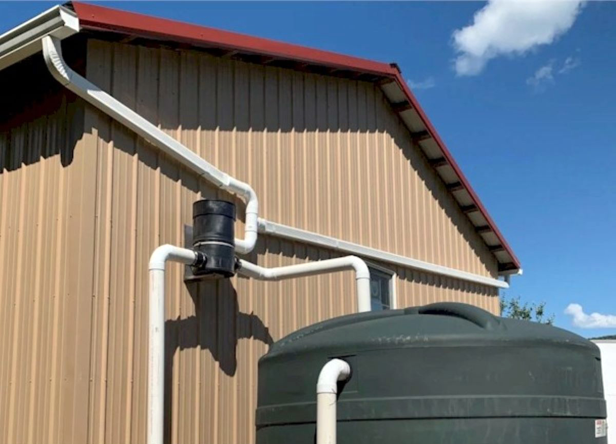 Sistema de recuperación de agua de lluvia con tambos de plástico. Foto: Ecoinventos.