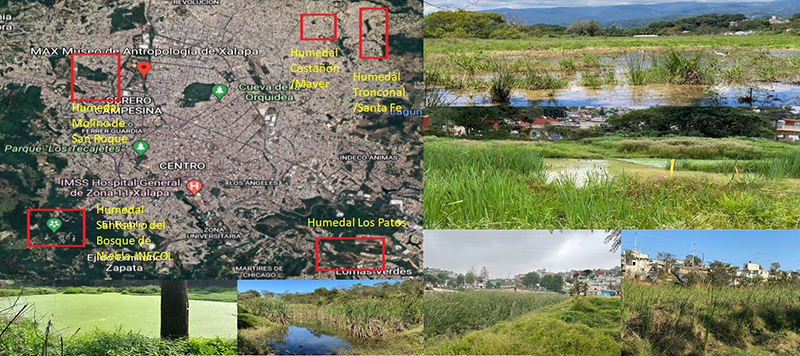 Localización y vista de algunos humedales de Xalapa, Ver.