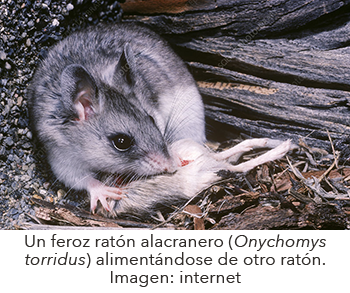 En cuanto a su alimentación, estos roedores son depredadores extremadamente agresivos y se alimentan principalmente de otros animales. Entre sus favoritos se encuentran los saltamontes, escorpiones, escarabajos, grillos, polillas e incluso roedores. En situaciones de amenaza o necesidad, recurren al canibalismo. Por otro lado, son presas de diversos depredadores como zorros, linces, zorrillos, lechuzas y búhos.