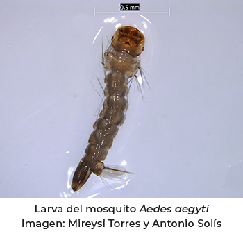 Slider: Larva del mosquito Aedes aegyti. Imagen: Mireysi Torres Carrera y Antonio Solís Soria