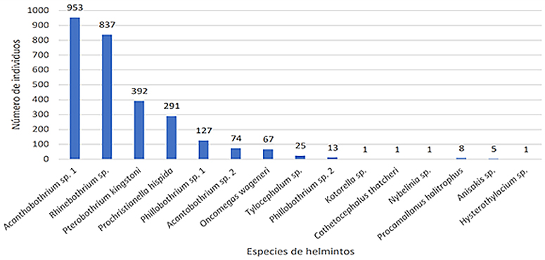 La estructura de las infracomunidades en esta especie de hospedero es el resultado de interacciones y procesos ecológicos entre las especies. La gran abundancia de ciertas especies de céstodos puede deberse a un proceso de acumulación en el tiempo por alimentarse de hospederos intermediarios ampliamente infectados por dichas especies.