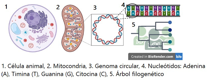 Para los biólogos que estudian la evolución, el ADN de la mitocondria es uno de los marcadores moleculares preferidos para entender los cambios que ocurren a través de generaciones, el origen geográfico y la dispersión de muchas especies poblaciones. Gracias a las altas tasas de mutación del genoma mitocondrial, también es posible evaluar como estas variantes se comparten y se distribuyen entre especies o poblaciones. Inclusoha permitido detectar diferencias genéticas entre grupos de animales morfológicamente similares o que se han separado muy recientemente. A estas especies se les llama crípticas, pues a pesar de su separación reciente y similitud morfológica, presentan diferencias genéticas suficientes para considerarlas distintas.