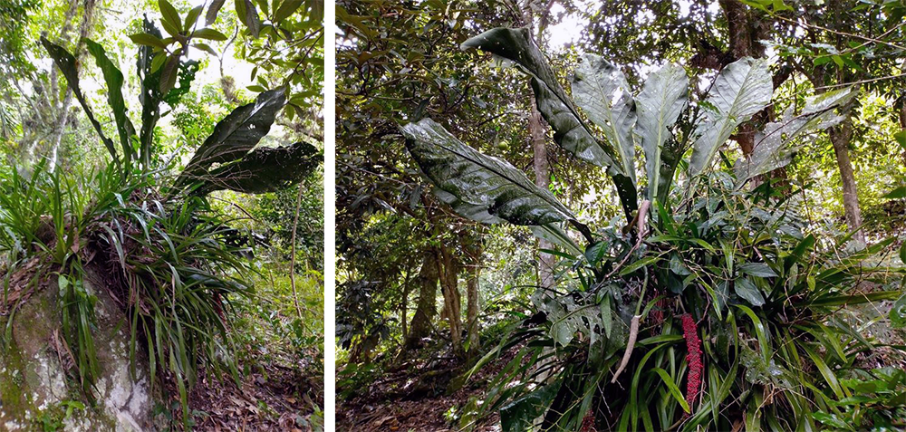 Tal es el caso del Anthurium schlechtendalii Kunth, llamado comúnmente hoja de piedra o raíz de piedra, originario de México y distribuido ampliamente, se ha cultivado en los trópicos por sus espectaculares hojas que alcanzan los 112 cm con virtudes medicinales.