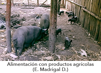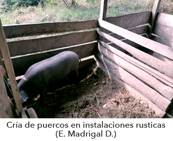 familiares cerca de las viviendas.  Los animales normalmente se encuentran confinados en instalaciones rústicas, elaboradas con materiales locales (madera y lámina de cartón), y en algunos casos de origen industrial.