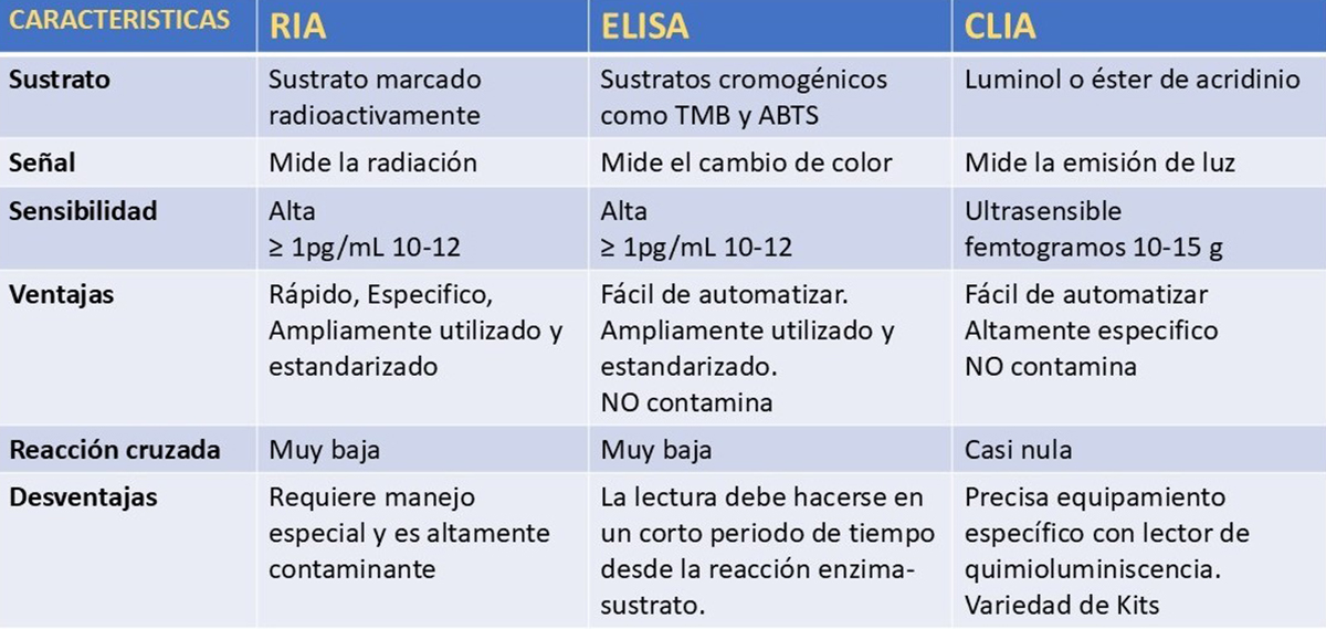 Tabla 1. Comparación entre el CLIA y otros inmunoensayos