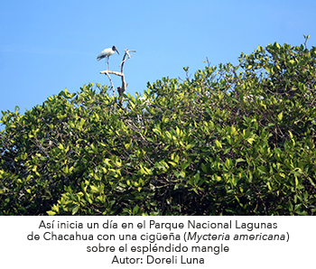 En la impresionante costa Oaxaqueña, se encuentra un rincón lleno de vida como ningún otro: el Parque Nacional Lagunas de Chacahua (PNLC). Dentro de aproximadamente 15,000 hectáreas del PNLC, diversos ecosistemas se mezclan, generando un ambiente habitable para diversas especies. El PNLC fue la primera Área Natural Protegida del país decretada en 1937 y es considerada como Región Marina Prioritaria en México (RTP-34). Asimismo, es reconocido como sitio RAMSAR (No. 1819) y un Área Importante para la Conservación de las Aves (AICA 222). Entre la vegetación del PNLC, sobresale el manglar, conformado por el mangle rojo (Rhizophora mangle), negro (Avicennia germinans), blanco (Laguncularia racemosa) y el botoncillo (Conocarpus erectus), árboles que desempeña un papel clave en el ecosistema. Sus raíces que emergen de los corredores acuáticos salvaguardan la costa contra los  embates de huracanes e inundaciones. Mientras que las raíces sumergidas bajo el agua de la laguna brindan un lugar seguro para diversos organismos, permitiendo que surjan interacciones ecológicas las cuales mantienen el equilibrio natural del ecosistema. Junto al manglar, por la orilla de la laguna, se encuentra el tular (Typha spp.) y el zacate salado (Distichlis spicata), plantas que además de brindan refugio para toda clase de organismos, también ayudan a purificar el agua y evitar la erosión del suelo.