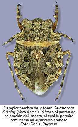 Los gelastocóridos o chinches sapo son insectos que habitan las márgenes de cuerpos de agua como ríos y lagos. Son chinches pequeñas que se camuflan fácilmente con su entorno, capaces de saltar y de gran parecido con los sapos verdaderos (Bufonidae), de ahí su nombre común. Sabemos que en México se distribuyen al menos 20 especies de estas chinches tan particulares.