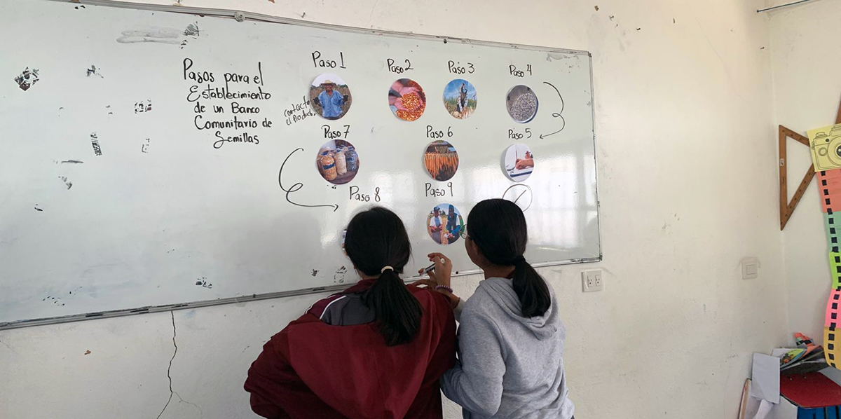 Hay diversas formas de acercar a los jóvenes a dinámicas agroecológicas acopladas con una alimentación sana, pero evidentemente una herramienta clave para la conservación de la agrobiodiversidad es la creación de los bancos escolares de semillas gestionados por ellos mismos. La implementación de un banco de semillas dentro de un recinto escolar sirve de base para el desarrollo de talleres, conferencias, recolectas, juegos y ferias para educar en valores que impulsen la conservación de recursos locales. El almacenamiento y administración de semillas nativas de la comunidad como el maíz, frijol, calabaza, chile, tomates y algunas plantas silvestres con valor para la comunidad, generará en los jóvenes empatía con la labor campesina de producción de alimentos y empoderamiento en el resguardo y administración de las semillas de su comunidad con capacidad de responder a catástrofes ambientales que provocan la pérdida de semillas.