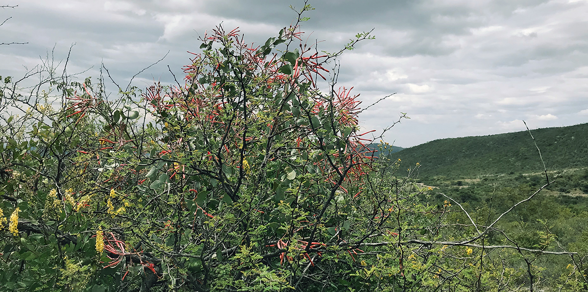 Fig 1. Psittacanthus auriculatus, una especie de zonas áridas en Santiago Chazumba de los Valles Centrales de Oaxaca, México (Foto: Juan Francisco Ornelas)
