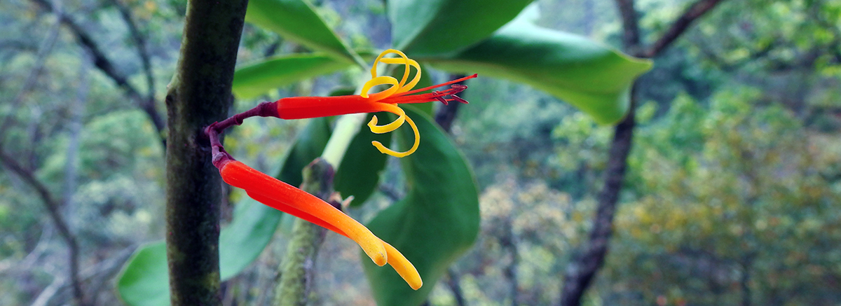 Cuando pensamos en muérdagos, probablemente nos venga a la mente esas plantas que se cuelgan sobre las puertas en Navidad. Sin embargo, existe un grupo de muérdagos tropicales que merece mucha más atención por el papel clave que juegan en la naturaleza, se trata de los muérdagos Psittacanthus, un grupo con más de 100 especies distribuidas del norte de México al norte de Argentina caracterizado por ser plantas parásitas con flores muy llamativas y que tienen un gran impacto ecológico. Estos muérdagos florecen en verano ofreciendo valiosas recompensas de néctar a diversas especies de colibríes, mariposas, abejas, abejorros y hasta murciélagos. Además, sus frutos carnosos ricos en lípidos representan un importante aporte de energía, de gran utilidad en temporada invernal, para especies de aves migratorias como los chinitos (Bombycilla cedrorum), que se encargan de dispersar sus semillas. Los muérdagos crecen sobre árboles (hospederos) y toman parte de sus nutrientes (agua y minerales), pero lo interesante es que son parásitos que realizan fotosíntesis como cualquier planta, por lo que son llamados hemiparásitos.