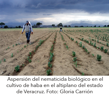 En la búsqueda de potenciales agentes de control biológico para el nematodo dorado, se seleccionó el hongo nematófago Metarhizium carneum (=Paecilomyces carneus) como una alternativa para la resolución de este problema fitosanitario. Mediante experimentos de laboratorio e invernadero, se probó que el hongo tiene la capacidad de reducir eficientemente la población del nematodo dorado de la papa, además de tener efecto sobre otros nematodos emergentes de alta patogenicidad como son Meloidogyne enterolobii y Meloidogyne paranaensis, los cuales viven dentro de la raíz de la planta y causan serios problemas en el cultivo de tomate, pepino, pimiento y café. Además, se probó la eficiencia de este hongo nematófago en la reducción de la tasa de reproducción de nematodos en entornos reales a nivel de campo abierto y en cultivos bajo malla sombra. El uso de M. carneum fue motivo de dos patentes otorgadas en México (MX/E/2011/028546-Título 364353 y MX/E/2012/090977-Título No. 360582) y en otros países como Australia, Brasil, China, Colombia, EEUU, Nueva Zelanda, Rusia, Sudáfrica, Perú y algunos países de la Unión Europea.