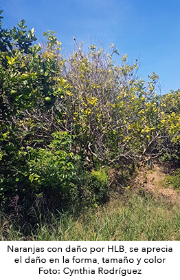 Las naranjas, toronjas, mandarinas, limas y limones son frutas que además de sabrosas, son nutritivas y aportan una gran cantidad de vitamina C. Estas frutas, también llamadas cítricos, pertenecen al género Citrus y son de gran interés comercial. México es el cuarto exportador de cítricos y el segundo exportador de limón a nivel mundial. Sin embargo, la producción de cítricos está siendo seriamente afectada por la enfermedad conocida como “enverdecimiento de los cítricos” o “HLB” (Huanglongbing), la cual causa graves daños en los tejidos de las hojas, frutos pequeños (Figura 1) con mal sabor y finalmente la muerte de las plantas. La enfermedad HLB es caudada por tres especies de la bacteria Candidatus Liberibacter, las cuales, al enfermar a las plantas, se alojan dentro de su tejido vascular (floema). Estas bacterias pueden ser dispersadas por el transporte de material vegetal contaminado y transmitidas mediante un insecto vector que, tras alimentarse de la savia de los árboles de cítricos enfermos, infecta árboles sanos.
