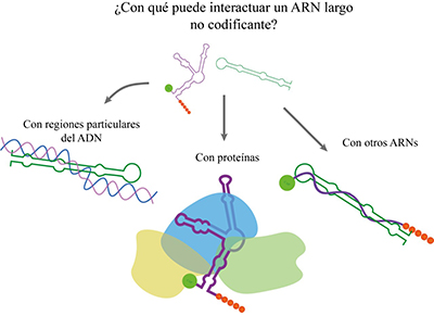 La replicación o la transcripción reversa son sólo algunos de los procesos que amplían este dogma dando cabida también a la inclusión de aquellos genes que se transcriben pero que no se traducen, es decir, hoy día es posible concebir a algunos ARNs como moléculas funcionales o incluso catalíticas. Los más estudiados son los ARN de trasferencia, los ARN ribosomales o ribozimas, sin embargo, existen otros transcriptos no codificantes que se clasifican en función de su longitud, es decir, ARNs cortos y largos. Ejemplos del primer grupo incluyen micro ARNs, ARNs de interferencia o silenciamiento y ARNs de interacción con proteínas PIWI, entre otros. Por su parte, los ARNs largos no codificantes (ARN-lnc o lncRNAs por el inglés, long noncoding RNAs), a diferencia de los cortos, son aquellos de longitud no menor a los 200 nucleótidos (Fig. 1), Si bien son quizá los menos estudiados, se sabe estos participan de procesos biológicos como diferenciación, proliferación, apoptosis, e incluso en la respuesta inmune.