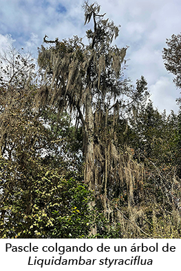 Una planta también muy popular en las fiestas decembrinas en México es el heno, musgo español, pascle o paxtle. Esta planta es más utilizada en las regiones centrales del país. Es una planta epifita, que quiere decir que crece sobre arboles u otras plantas y pertenece a la familia Bromeliaceae, la misma familia de las piñas. Su nombre científico es Tillandsia usneoides. Esta planta de aspecto peculiar se desarrolla desde la costa este de Estados Unidos hasta Sudamérica.