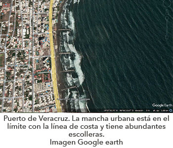 La opresión costera se ha observado en muchas zonas del mundo, y las costas mexicanas no son la excepción. Por ejemplo, estudios recientes han revelado que uno de los estados con mayor riesgo a sufrir la opresión costera es Veracruz. Esto se determinó explorando diversos aspectos que pueden promover la ocurrencia de este fenómeno: a) erosión en la costa; b) riesgo de inundación por incremento en el nivel del mar y mayor incidencia de tormentas; y c) presencia de ciudades y destinos turísticos (Figura 2).