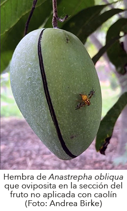La aplicación de recubrimientos a base de polvos minerales tiene múltiples bondades, por una parte, protege y bloquea la incidencia solar evitando el daño por rayos UV y por otra incrementa la calidad de la fruta y reduce el daño por insectos (Fig. 1)