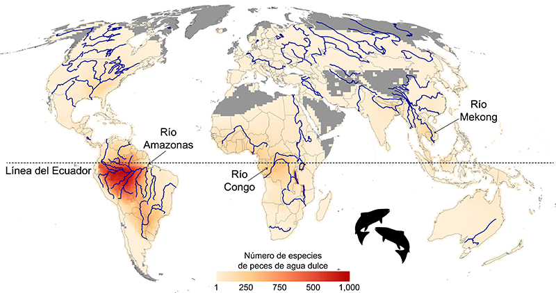 A nivel mundial, los ríos y lagos tienen una combinación única de peces cuya riqueza cambia según la cercanía o lejanía a las regiones tropicales.