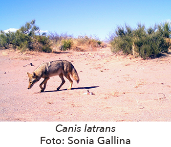 El tamaño promedio del ámbito hogareño para todos los coyotes (Canis latrans) que se siguieron en el bosque templado de la Sierra Madre de Oaxaca fue de 3.45 km2, siendo mayor en el periodo de dispersión (4.74 km2), seguido de la gestación (4.58 km2), reproducción (2.44 km2) y crianza (2.04 km2). La estimación promedio del ámbito hogareño para la temporada estudiada fue de 6.52 km2, siendo mayor para la época seca que fue de 6.69 km2 (Marín-Sánchez et al. 2015)