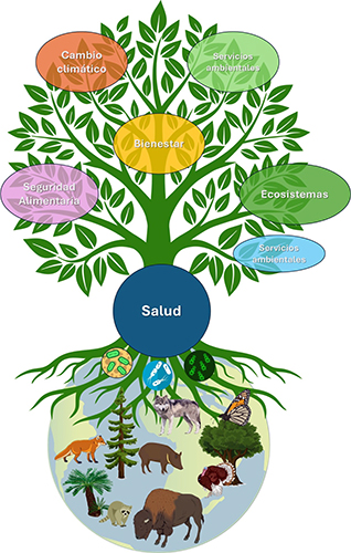 El deterioro e invasión de los ecosistemas por las actividades humanas pueden poner en riesgo a la salud de la vida silvestre (por el contacto con agentes infecciosos y no infecciosos) y la del ser humano. Es decir «la salud conecta a todas las especies del planeta»; frase que el investigador Phillip Kosch, a mediados de la década de los 1990, hacía justo por las interacciones, cada vez mayores, entre el ser humano y la vida silvestre. Por lo contrario, la autoorganización de todos los componentes de los ecosistemas se manifiesta en su salud, es decir, cuando todos los procesos se regulan por sí solos un ecosistema es sano y los servicios que proporcionan a los seres humanos son de gran calidad, reflejándose en nuestro bienestar mental y físico.